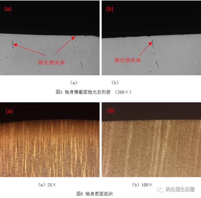 (1)齒軸的T形花鍵處存在龜裂狀裂紋,主要是由于磨削不當造成的;而軸身的短條狀磁痕主要是由硫化物夾雜引起的。