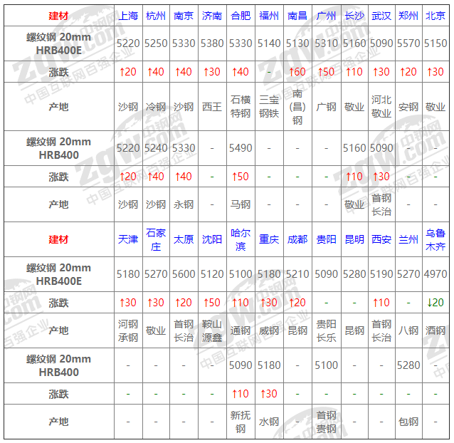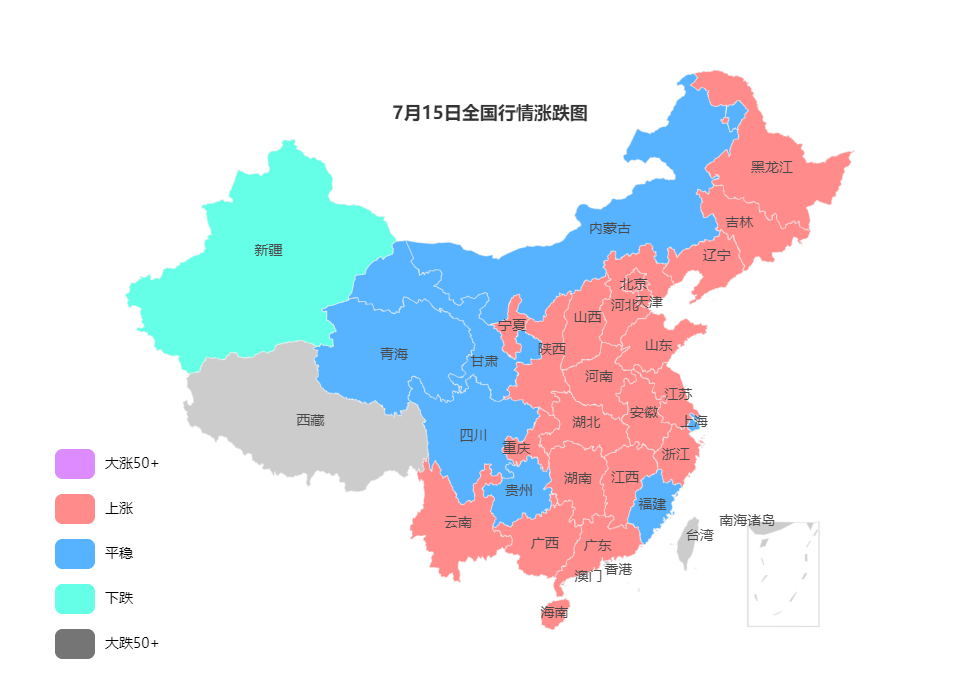 7月15日鋼鐵價格漲跌圖:穩中上漲
