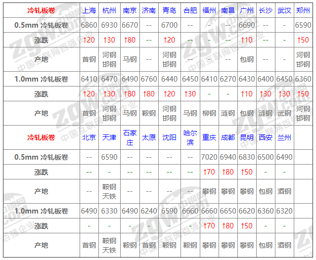今全國冷軋穩中調整,幅度20-80,伴隨前期一直拉漲的氣氛,今日全國冷軋仍偏強調整為主,但市場應出貨情況不是非常樂觀,都以觀望為主;